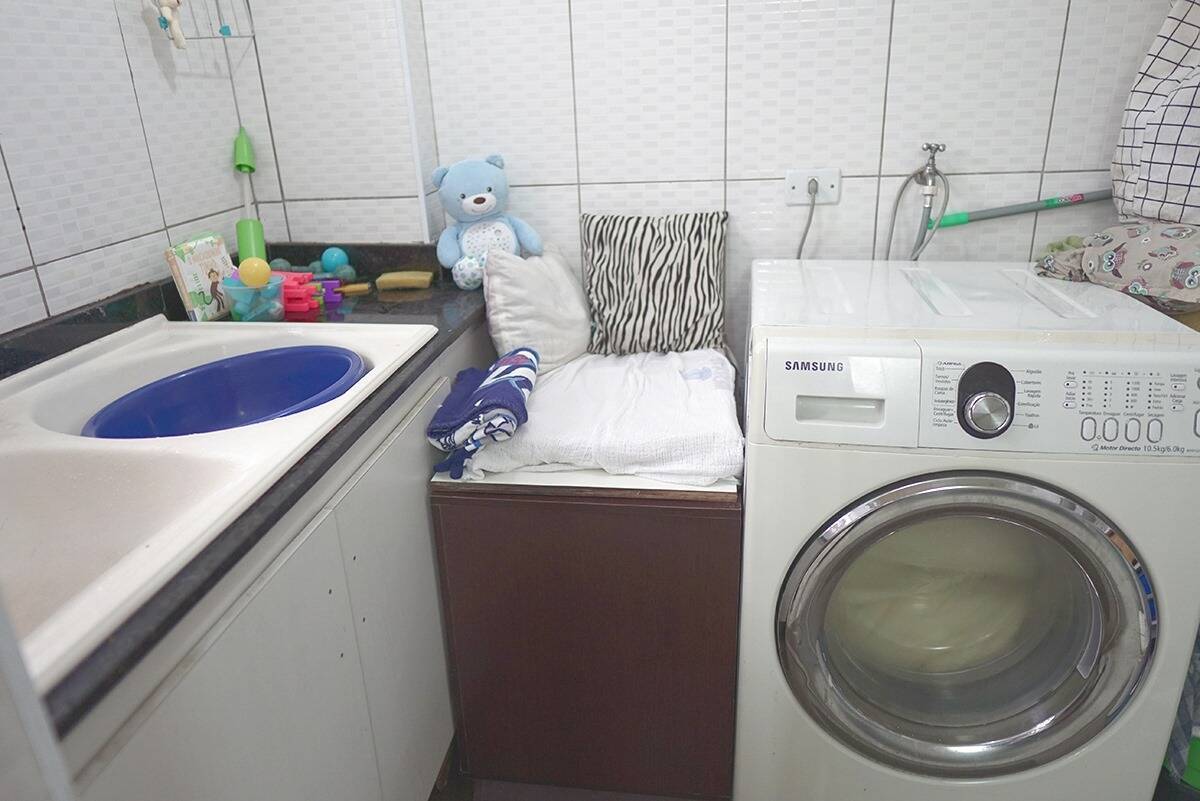 ? Lavanderia espaçosa com tanque duplo e espaço para máquinas de lavar e secar roupas
